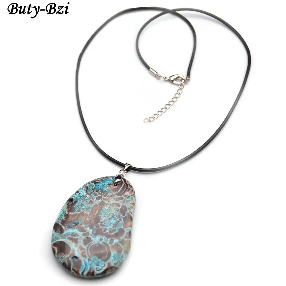 Kopen Goedkoop Natuurlijke Blauwe Oceaan Stone Slab Hanger Zwart Lederen Koord Kettingen Ketting Mode sieraden Online