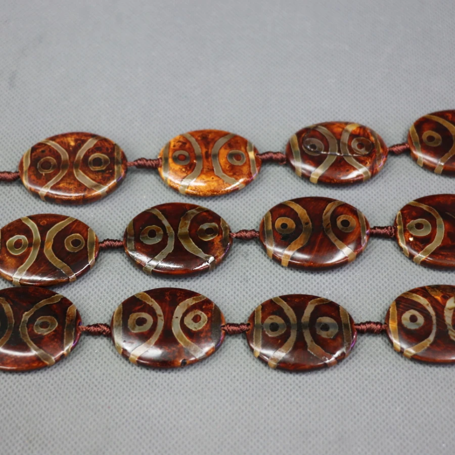 Beste Koop 2 strengen lot 20x25 Bruin Mala Tibetaanse Mystieke Steen Dzi Kettingen, tibetaanse Charms Slab Gems Stone Matte Turtleback Coin Kralen Goedkoop
