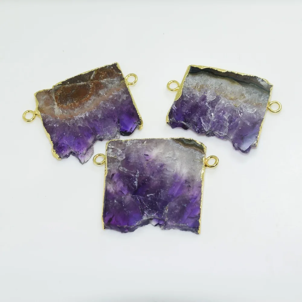 Kopen Goedkoop 5 stks Real Paars Rechthoek natuurlijke slice druzy steen connector gold bezel ruwe cluster plaat geode druzy crystal quartz hanger Online
