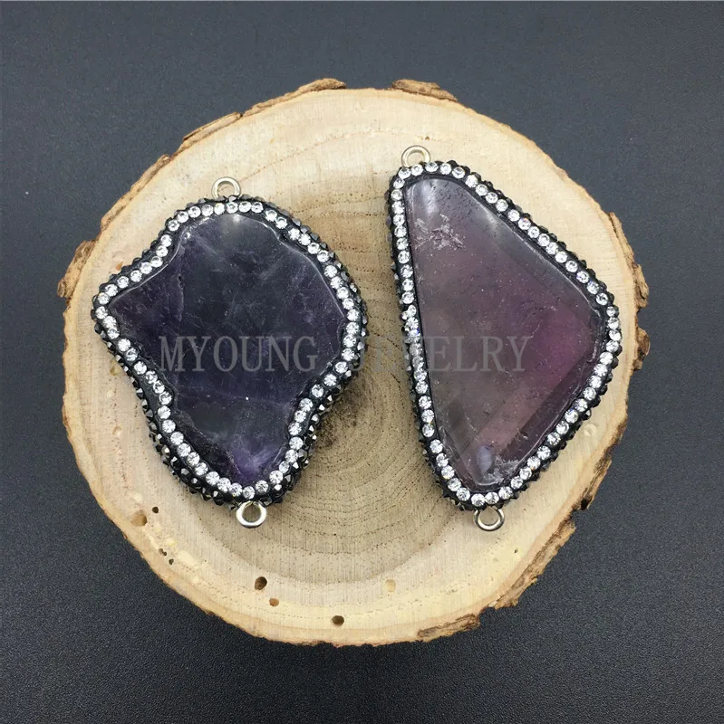 Goede Koop MY1291 Freeform Paars Crystal Slice Amethisten Slab Connector Hanger Verharde Rhinestone Randen Natuur steen Sieraden Goedkoop