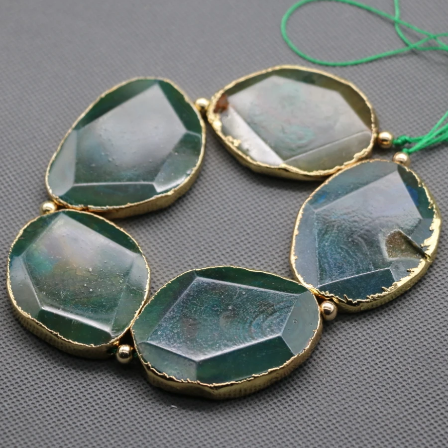 . Goede Koop C 1903 Groen Druzy Facet Stone Kralen Gold Wrapped Slab stone Connector Kralen Hanger Gepolijst Volledige Strand 50mm Elke Goedkoop.