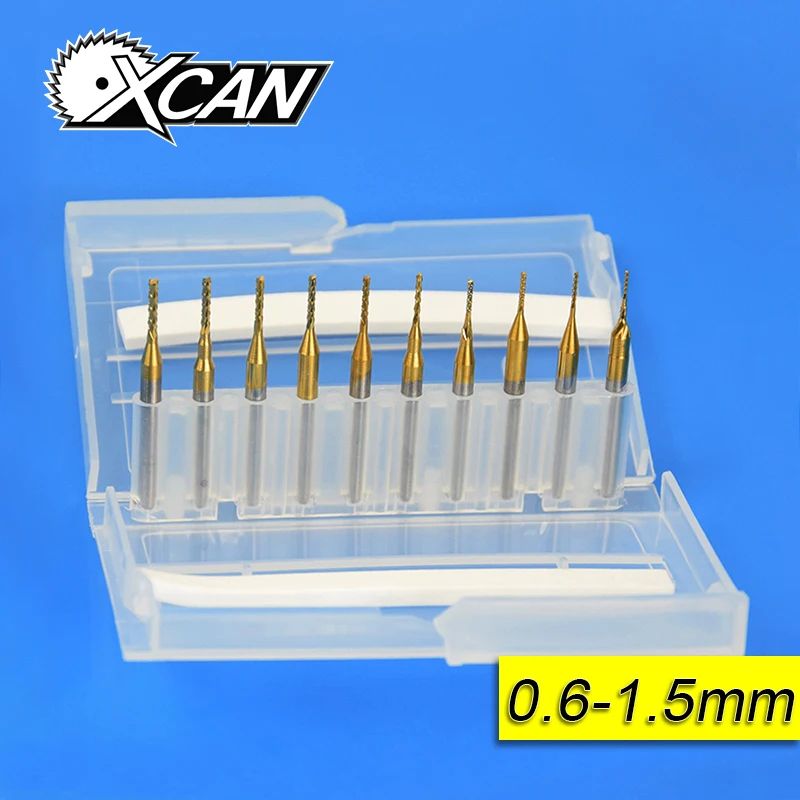 . Kopen Goedkoop 10 stks 0.6mm 1.5mm Titanium Coated Carbide Frees Graveren Edge Cutter CNC Router Bits End mill voor PCB Machine Prijs.