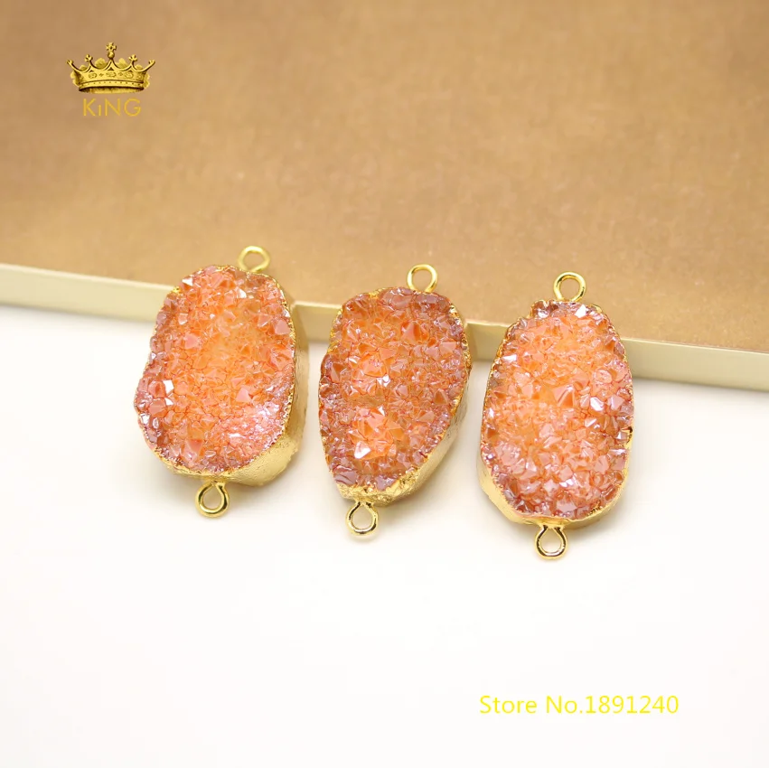 Goede Koop 10 stks Freeform Slab Druzy Connectors Sieraden, Oranje Drusy Quartz Plated Gouden Randen Ruwe Kristallen Charms Ketting Armband GH195 Goedkoop