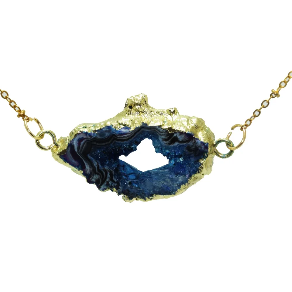 Kopen Goedkoop Blauw Onregelmatige marmer natuurlijke slab geode druzy connector ketting willekeurige ruwe slice druzy steen connector ketting voor vrouwen Prijs