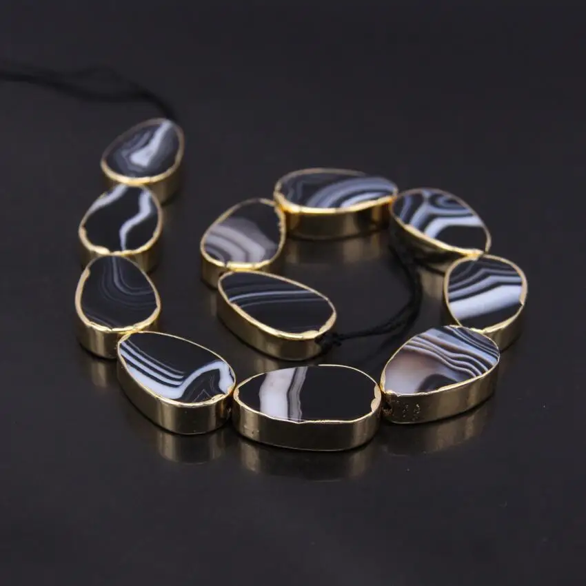 Kopen Goedkoop 20x30mm Natuurlijke Zwart Onxy Achate Teardrop Slab Losse Kralen, Gold Randen Zwarte Streep Agaten Stone Slice Nugget Hangers Sieraden Online