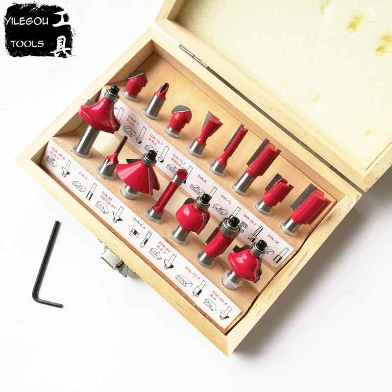 Goede Kopen Gratis Verzending 15 Stks Frees Router Bit Set 8mm Schacht Hout Cutter Carbide Schacht Mill Houtbewerking Graveren Snijden gereedschap Goedkoop
