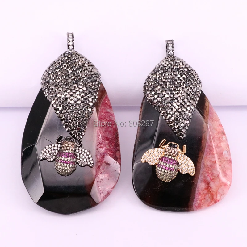 Beste Kopen 5 Stks Nieuwe Aankomst Natuurlijke Slab Stone Hanger, Met Micro Pave Cz Insect Linlidada Charm Hangers Goedkoop