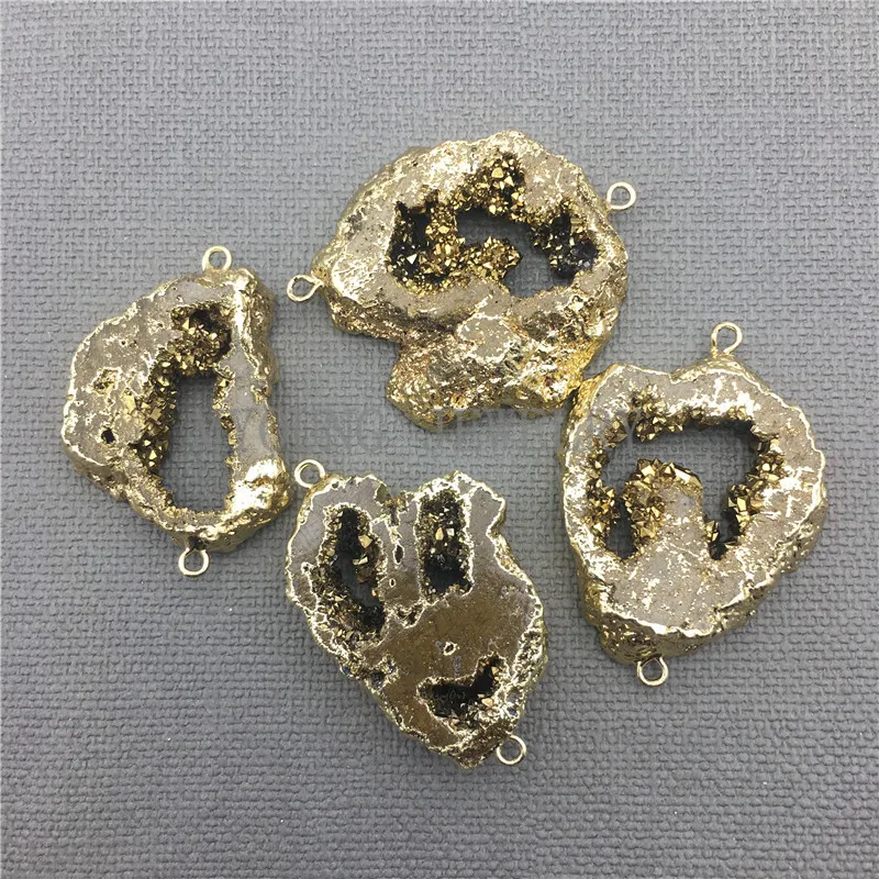 Beste Kopen My0409 Freeform Agaten Geode Druzy Slice Goud Kleur Gecoat Connector, Rij Titanium Slab Hanger Goedkoop
