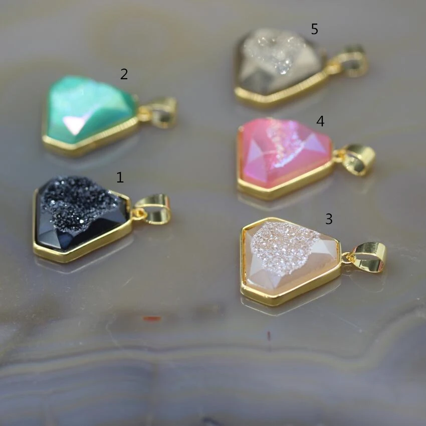 Goede Koop 5 stks partij, Raw Druzy Geode Driehoek Vorm Facet Slab Nugget Charmes, Natuurlijke Agaat Drusy Gold Randen Hangers, sieraden Maken Goedkoop