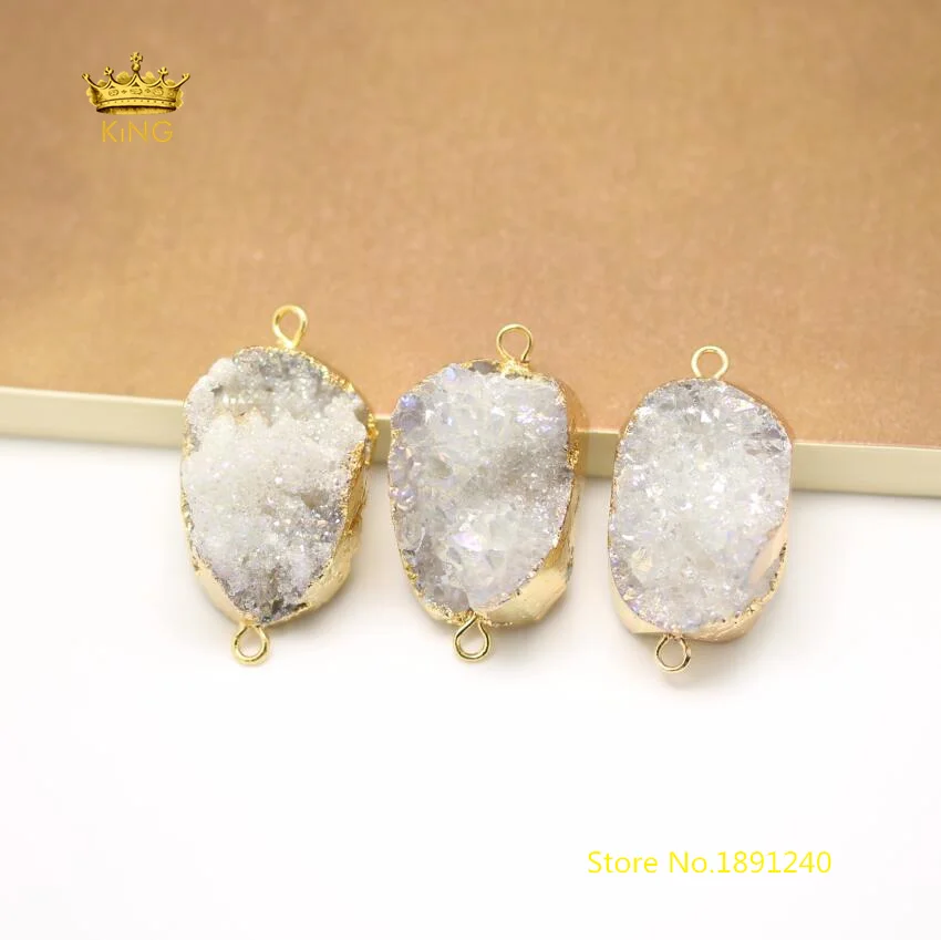 Kopen Goedkoop 10 stks Rough Quartz Wit AB Titanium Druzy Charm DIY Armband, Goud Koper Borgtocht Ruwe Drusy Crystal Slab Connectors ketting GH213 Prijs