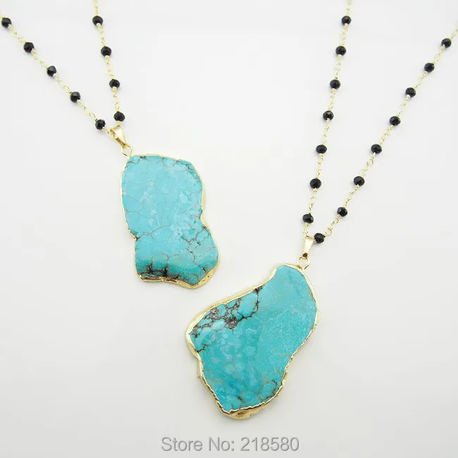 Goede Kopen N14121304 Zwart Kralen Rondelle Rozenkrans Collier Howliet Slab Hanger Ketting Goedkoop