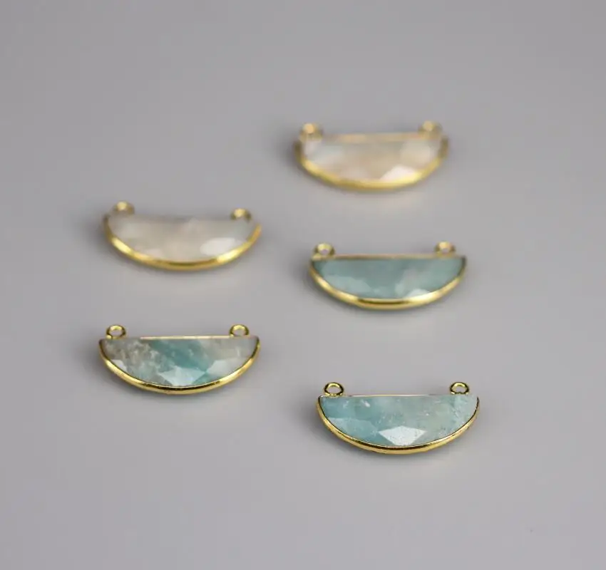 Kopen Goedkoop Golden Plated Amazoniet Facet Halve Cirkel Slab Hanger Connectors, Natuursteen Dubbele Cirkels Bail Charms Sieraden Maken Online.