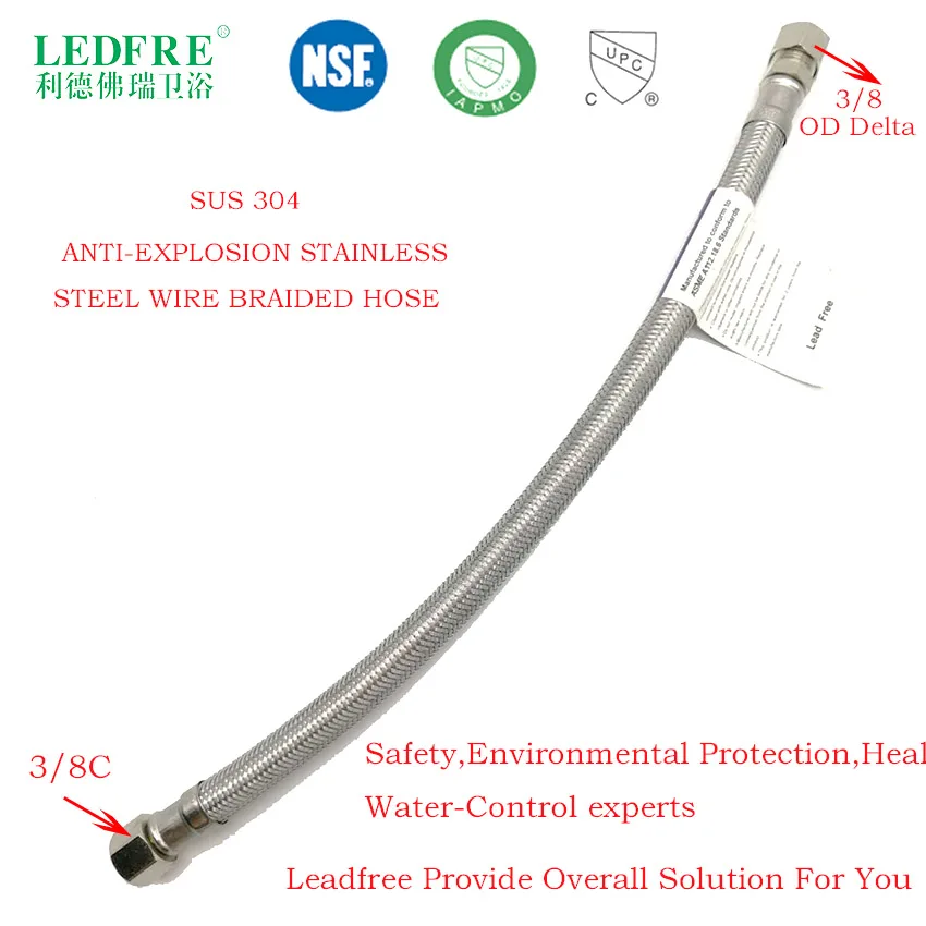. Beste Kopen LF15008 3 8C * 3 8OD Delta Flexibele Kraan Water Supply Slang Roestvrij Staal gevlochten connector sanitair PVC buis flexibele slangen Goedkoop.