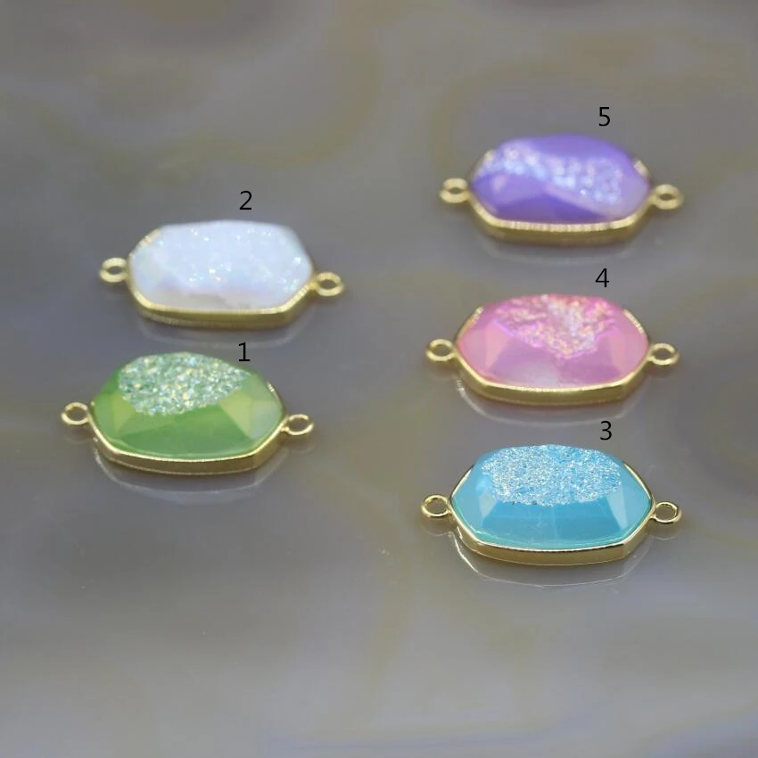 Beste Kopen 5 stks partij, Gold Randen Titanium Quartz Druzy Facet Slab Nugget Connectors Armband, ruwe Agaat Geode Drusy Ketting Hanger Charms Goedkoop