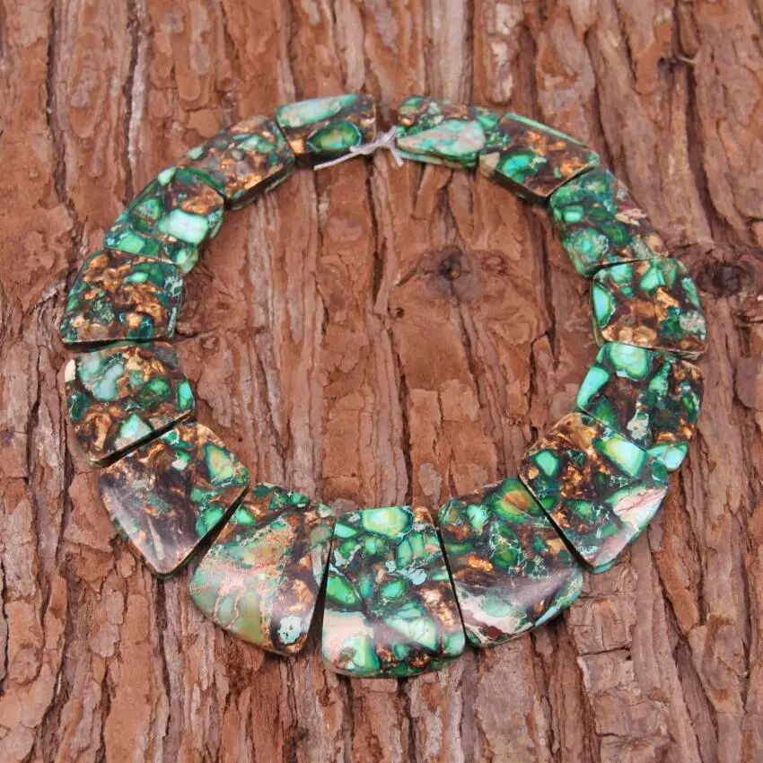 Kopen Goedkoop Zee Sediment Stenen Ketting Set Sieraden, Donkergroene Kleur Keizer Gems Top Geboord Losse Kralen Vierkante Slab Charms Bevindingen Prijs