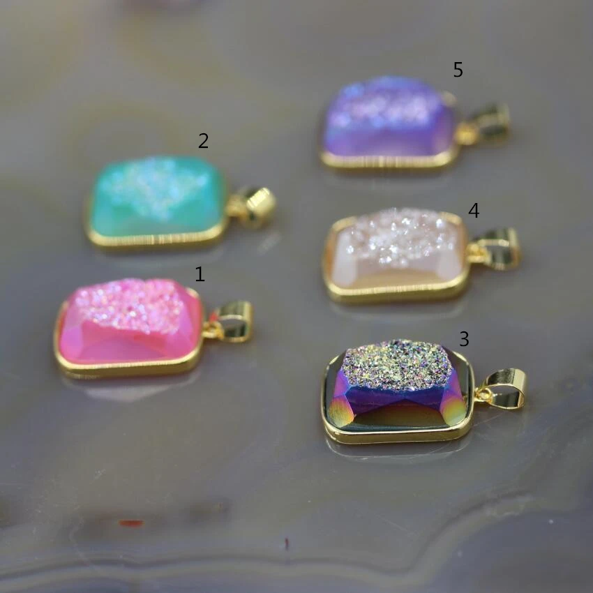 . Beste Koop 5 stks partij, Facet Rechthoek Ruwe Agaat Druzy Geode Slab Nugget Charmes, Natuurlijke Drusy Plated Gold Randen Hangers, sieraden Maken Goedkoop.
