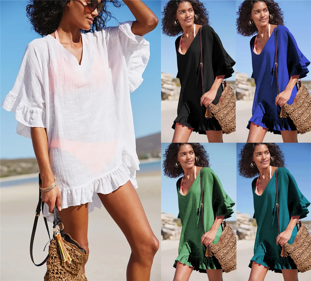 Kopen Goedkoop Beach Cover Ups Kaftan Badpak Vrouw 2019 Pareos Gratis Verzending Sarong Cover Up Geblazen Nek Bamboe Slab Katoen Blad rok Prijs.