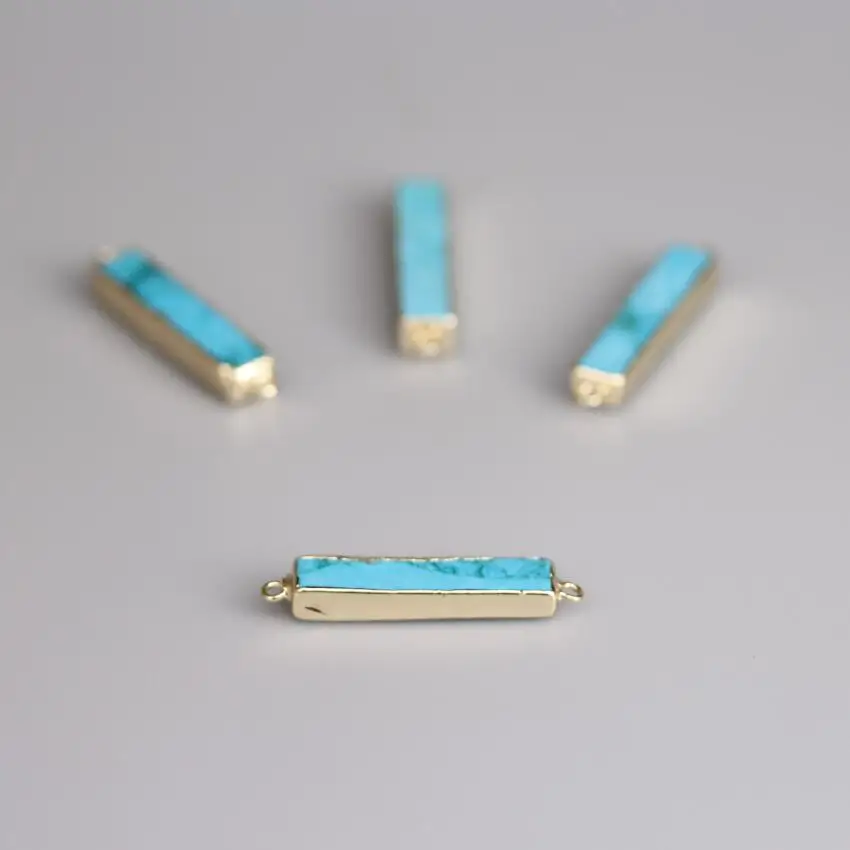 Beste Kopen 5 stks partij Gold Randen Rechthoek slice Connectors, Natuurlijke Turkooizen Hangers, Blauw Howliet Stone Slab Hanger Charms Sieraden Maken Goedkoop