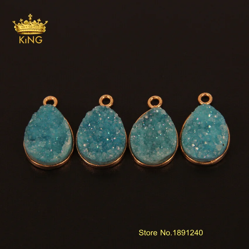 Goede Koop Blue Titanium Druzy Ag ate Flat Teardrop Pendant Raw Drusy Quartz Gems Slab Beads Pendants DIY Bracelet Supplies Bulk XFX078 Goedkoop