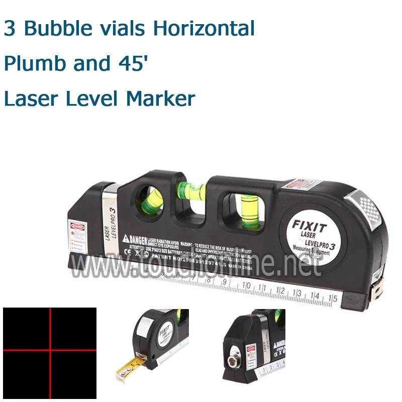 Beste Koop Multifunctionele Laser Level Marker W 250 cm Meten Tape 3 libellen Horizontaal, Plumb en 45 #039; LV03 Goedkoop