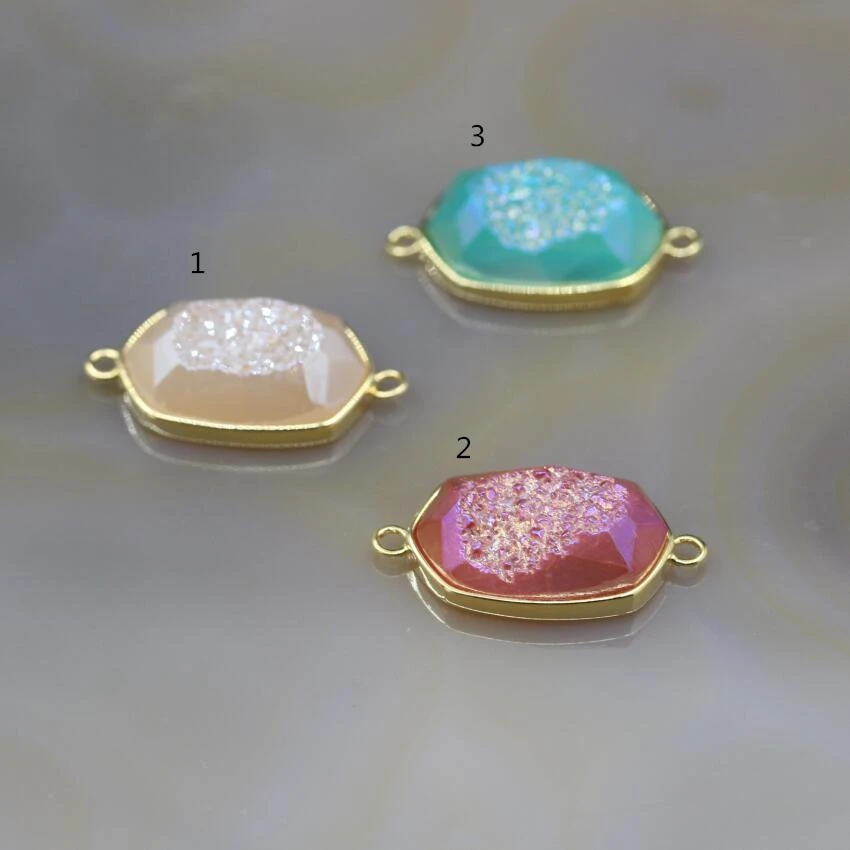 Beste Koop 5 stks partij, Gold Randen Quartz Druzy Facet Slab Nugget Connectors DIY Armband, titanium Agaat Geode Drusy Ketting Hanger Charms Goedkoop.