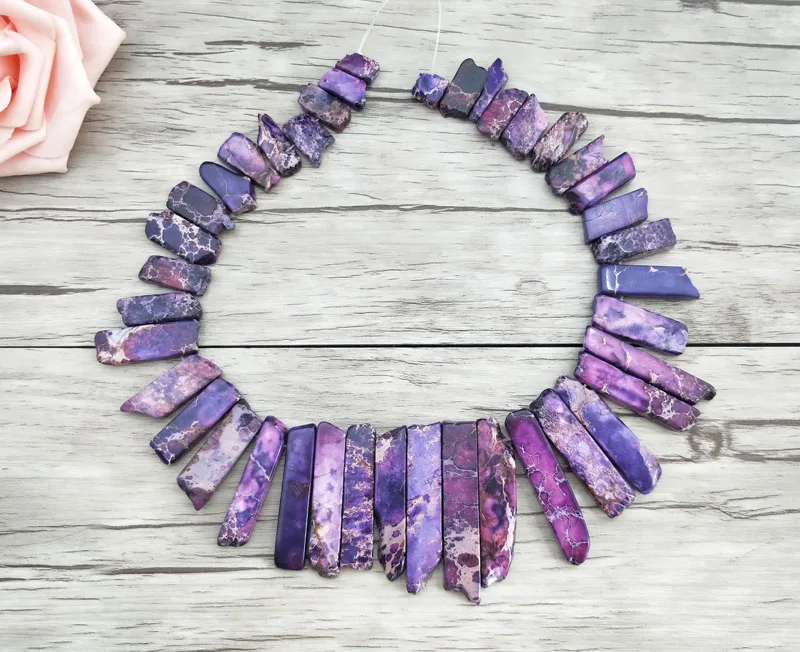 Goede Kopen 3 strengen Natuurlijke Paarse Keizerlijke steen Hanger, Slab Nugget Geboord Losse Kralen Bevindingen DIY Sieraden ketting maken PD935 Goedkoop