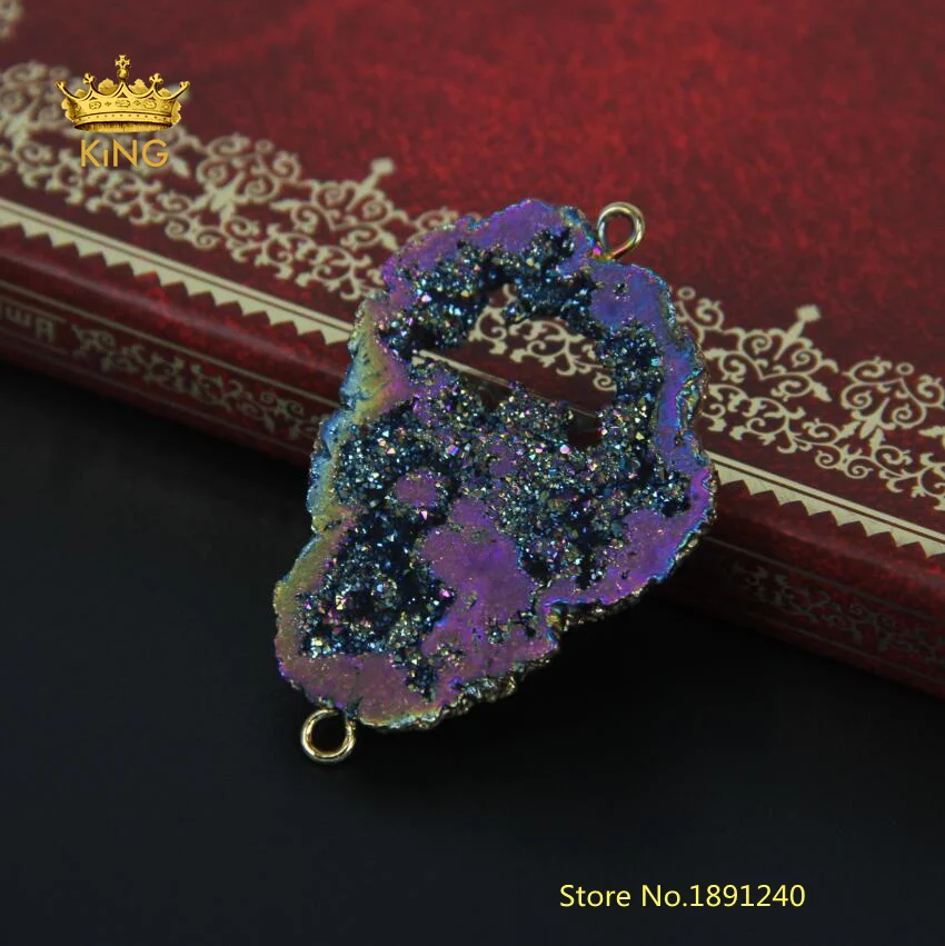 Kopen Goedkoop 6 7mm Thick Rainbow Titanium Druzy Freeform Slab Beads Connectors Jewelry, Gold Bails Link Stones Raw Drusy Pendants GH005 Prijs