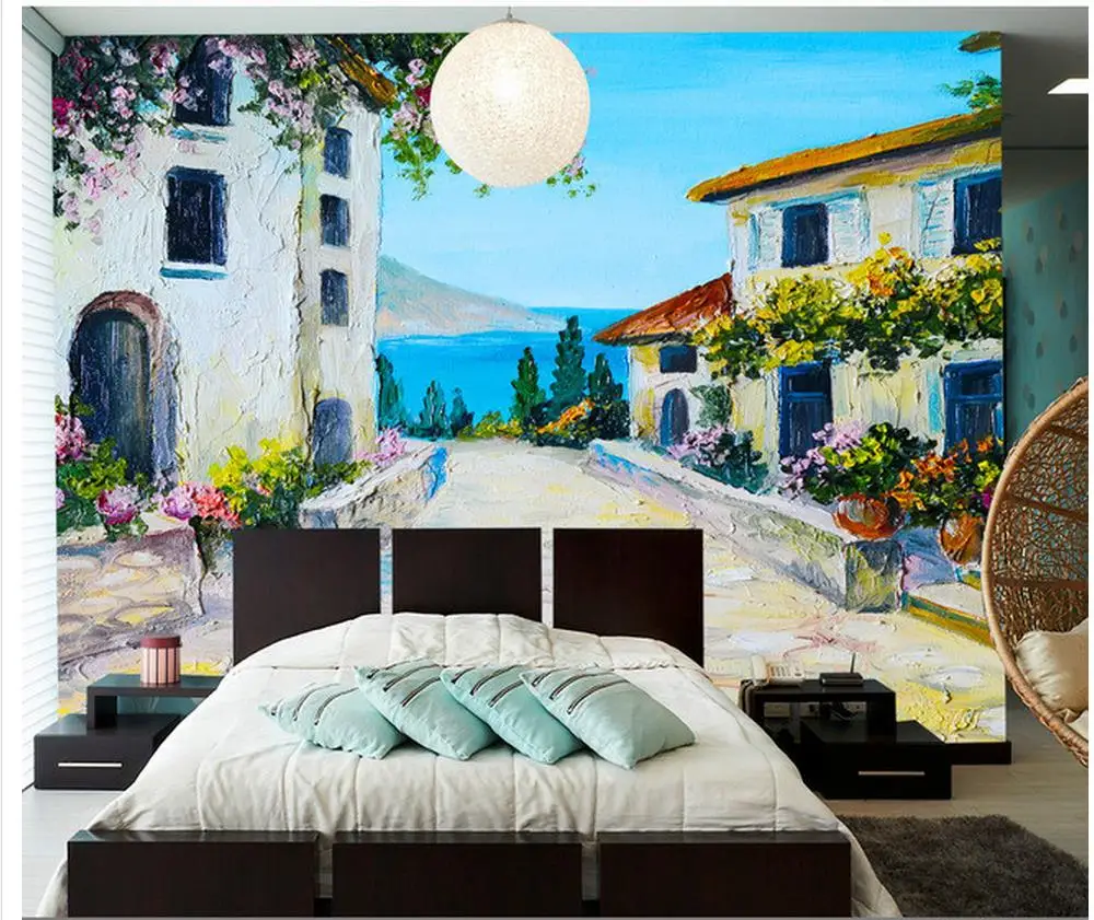Kopen Goedkoop Handgeschilderde Mediterrane Stone Slab Garden Cottage Met Achtergrond Mural 3d Behang Woondecoratie Online