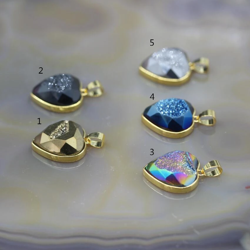 Kopen Goedkoop 5 Stks partij, Hartvormige Hangers Mystic Titanium Druzy
