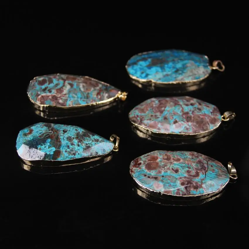 Beste Koop 5 stks partij, Oceaan jaspers Facet Slab Hangers, Natuurlijke Ruwe Zee Sediment met Gouden Rand, Druppels slice Hangers sieraden Goedkoop.