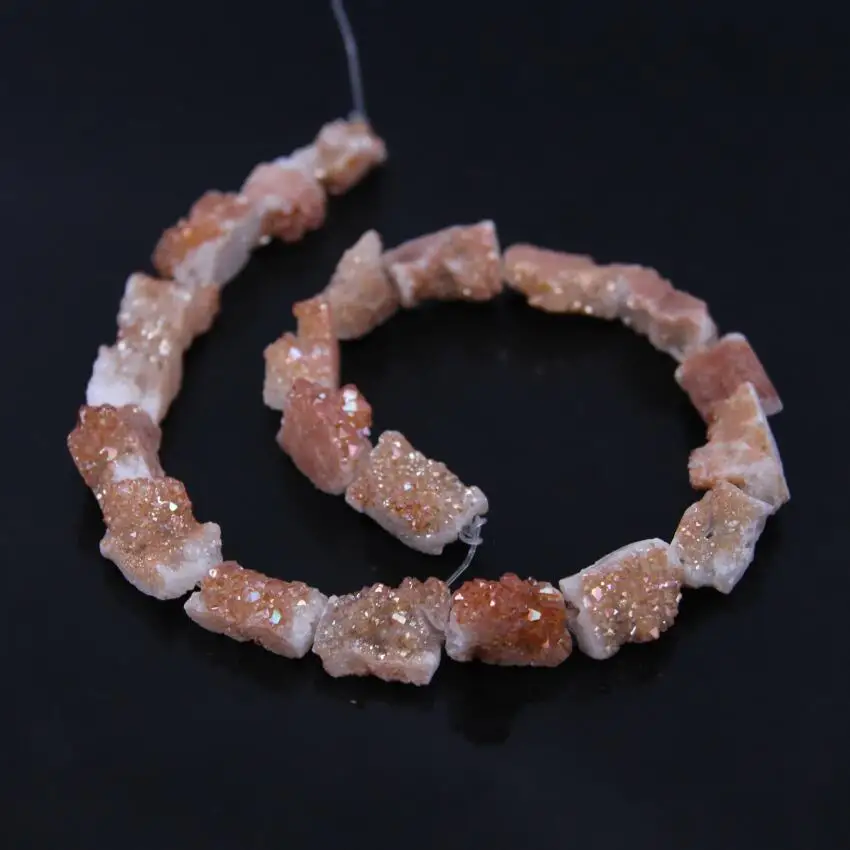 Kopen Goedkoop Approx21Pcs Strand Champagne Titanium Natuurlijke Quartz Drusy Geode Rechthoek Slab Hanger Kralen, Ruwe Edelstenen Druzy Ruw Slice Nuggets Prijs