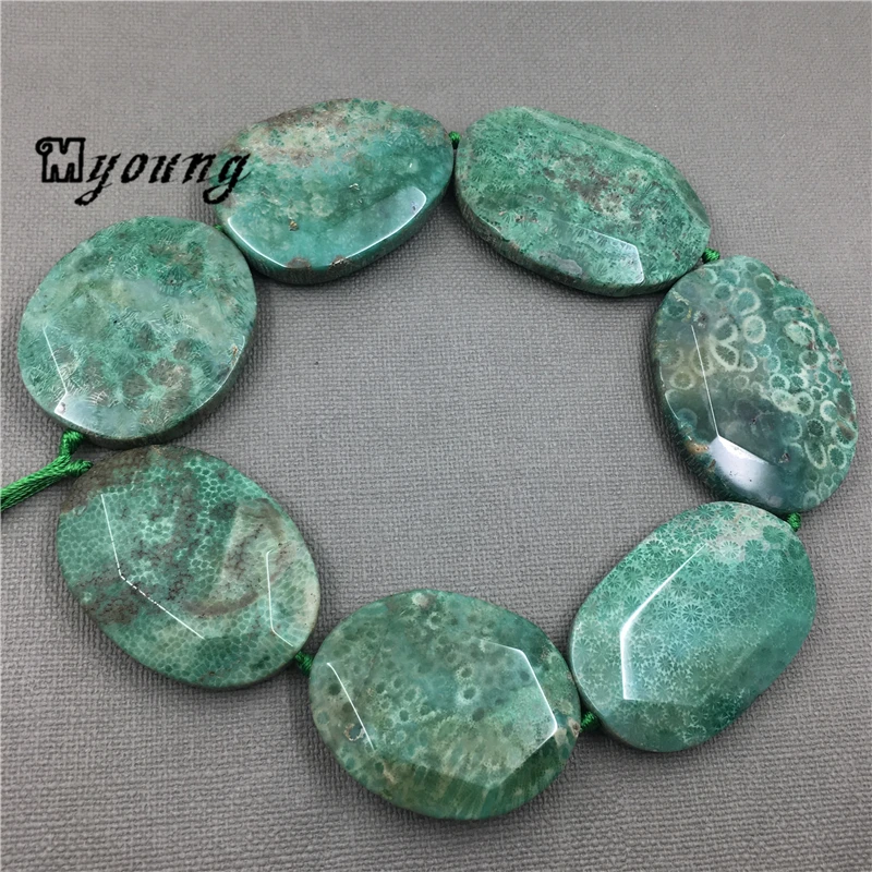 Kopen Goedkoop Ovale Facet Groene Chrysant stone slice kralen, Natuurlijke Coral Edelsteen Sediment Slab Hanger Kralen voor sieraden MY1504 Prijs.