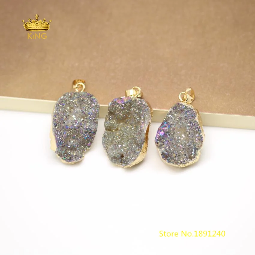 Beste Kopen 10 stks Slab Druzy Hangers Sieraden, Grey AB Titanium Drusy Plated Gouden Randen Charm Ruwe Quartz Crystal Charms Ketting Bulk GH217 Goedkoop