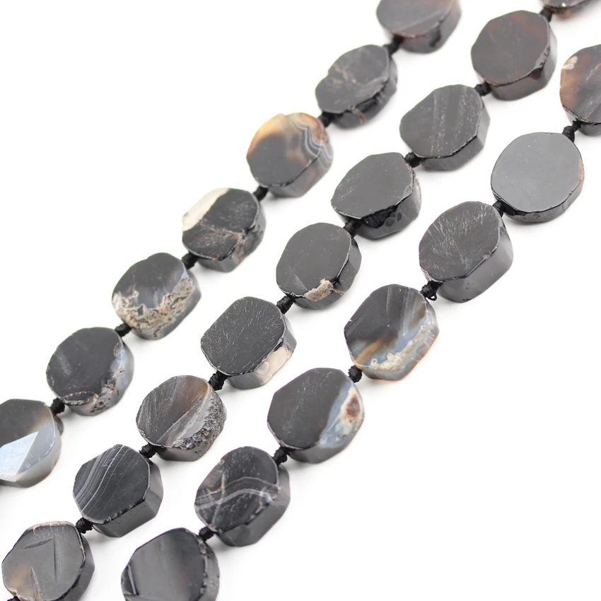 Beste Kopen Volledige strand Black Agaat Geboord Slab Losse Kralen Spacers Armband, Dragon Veins Agaat Natuurlijke Stenen Slice Chunky Charms Goedkoop.