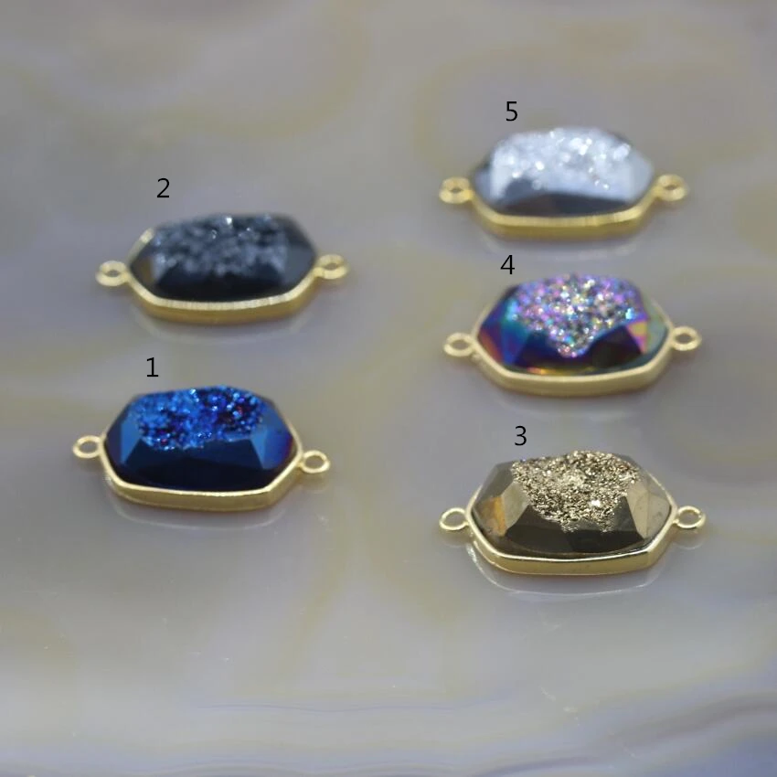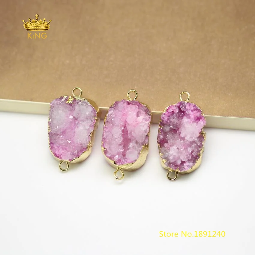 . Kopen Goedkoop 10 stks Dikke 10 16mm Slab Druzy Connector Sieraden, Roze Drusy Natuurlijke Quartz Ruwe Kristal met Gold koper Randen voor Armband GH267 Online.