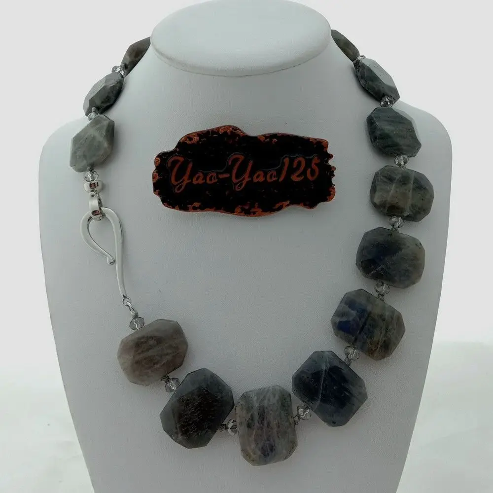 Kopen Goedkoop 19 #039; #039;labradoriet Grote Facet Slice Slab Kussen Rechthoek Ketting Prijs