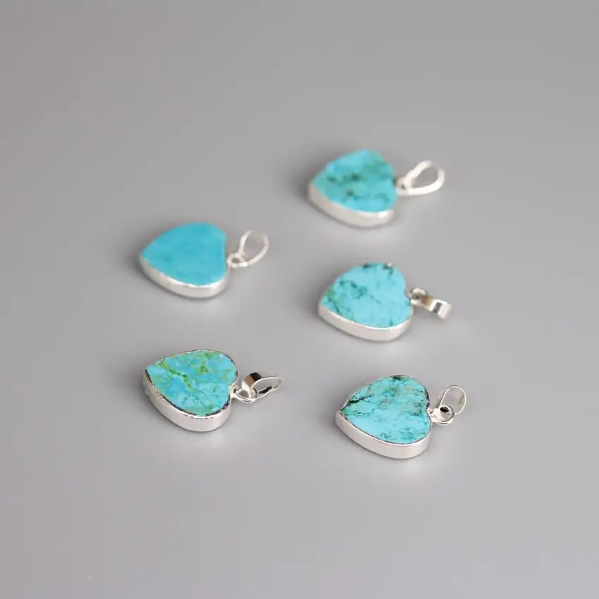 . Beste Koop Verzilverd Hart Liefde Vorm Charms Ruwe Turkooizen Hangers, 5 stks partij, Blauw Howliet Slab Slice Nugget Hangers Ketting sieraden Goedkoop.
