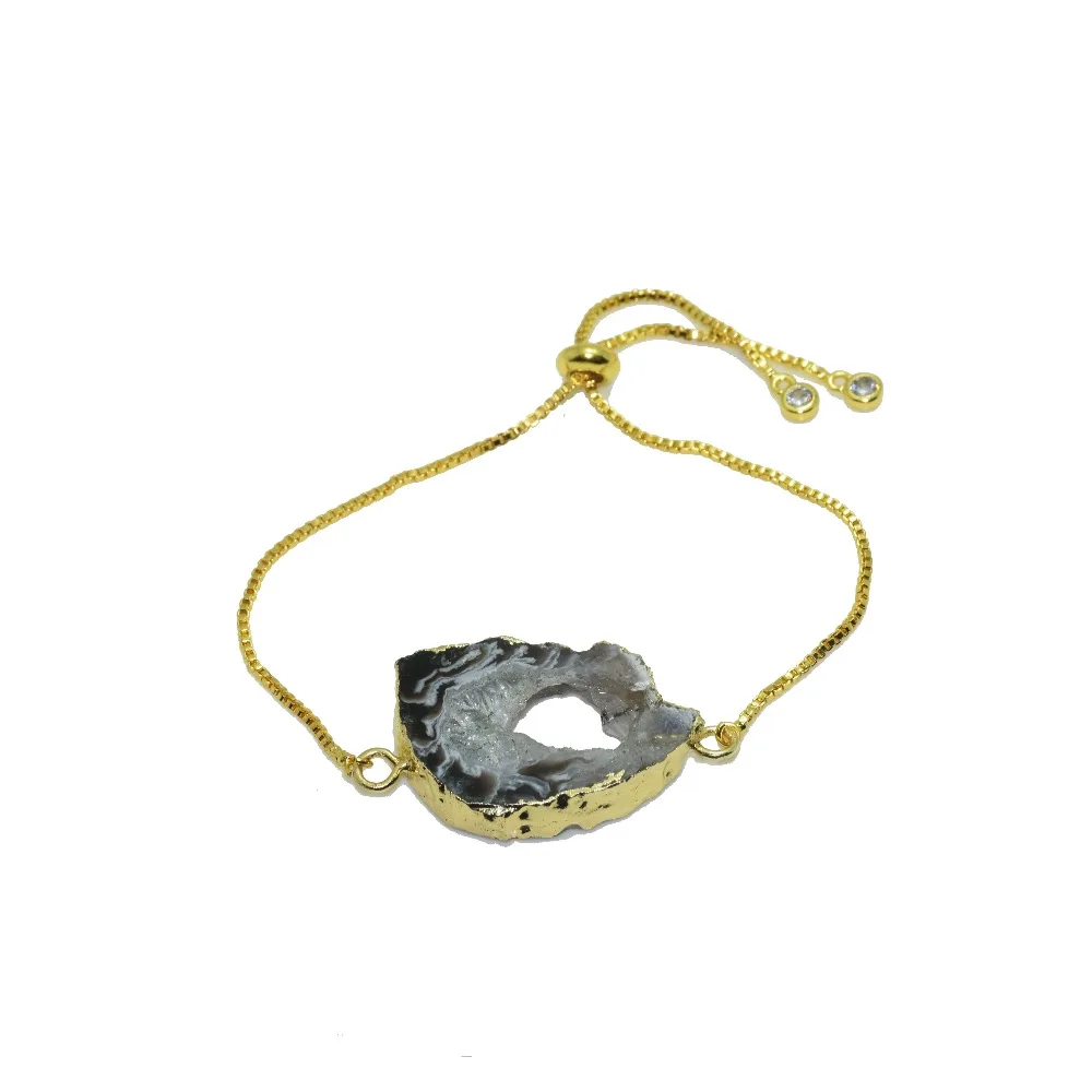 Kopen Goedkoop Grey Blank natuurlijke slice edelsteen druzy hanger armband meisje polish slab crystal quartz geode druzy connector armband vrouwen Online