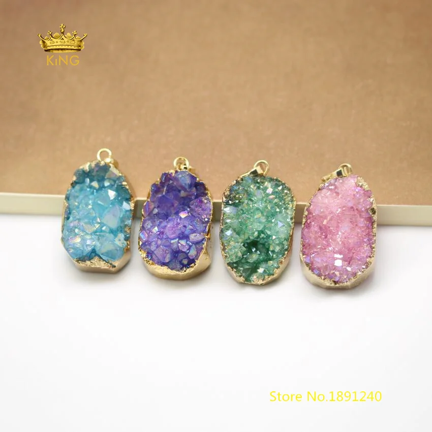 Goede Kopen 4 kleur, 10 stks partij Sparkly Druzy Slab Hangers Charms, Plated Gold Randen Natuurlijke Drusy Quartz Crystal Ambachten sieraden Goedkoop