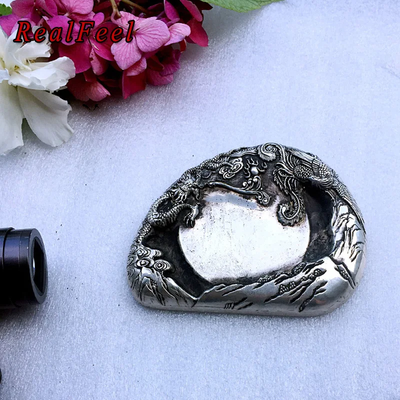 Beste Koop REAL FEEL10x13x1.5cm fengshui inkt steen verzilverd zinklegering Chinese Archaize productie inkt plaat collectible home decor Goedkoop
