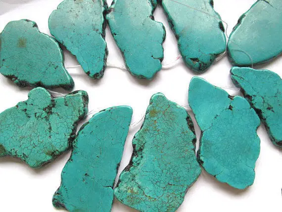 Beste Kopen 20 80mm volledige strand Turquoise Stone Slab Freeform groen Blauw wit Turquoise kralen blauw Magnestie Platen Turquoise hanger Goedkoop