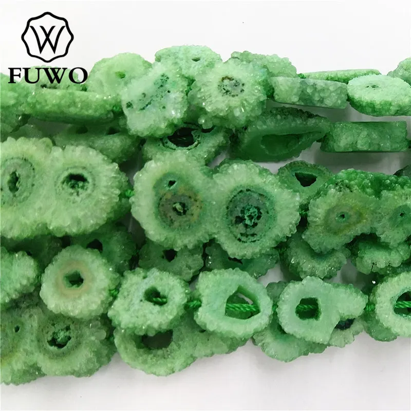 . Beste Kopen FUWO Volledige Strand Bloemvorm Green Quartz Druzy Druipsteen Slice Kralen Raw Druzy Slab Sieraden DIY Kralen Maken ST003 Goedkoop.