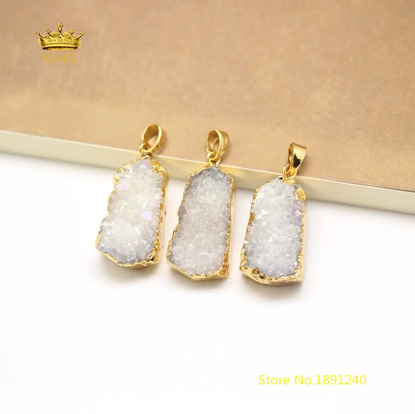 . Kopen Goedkoop 10 stks Goud Kleur Koper Plated Borgtocht Natuurlijke Witte Druzy Slice Kralen Hangers, Ruwe Drusy Quartz Agaten Slab Charms ketting GH178 Online.
