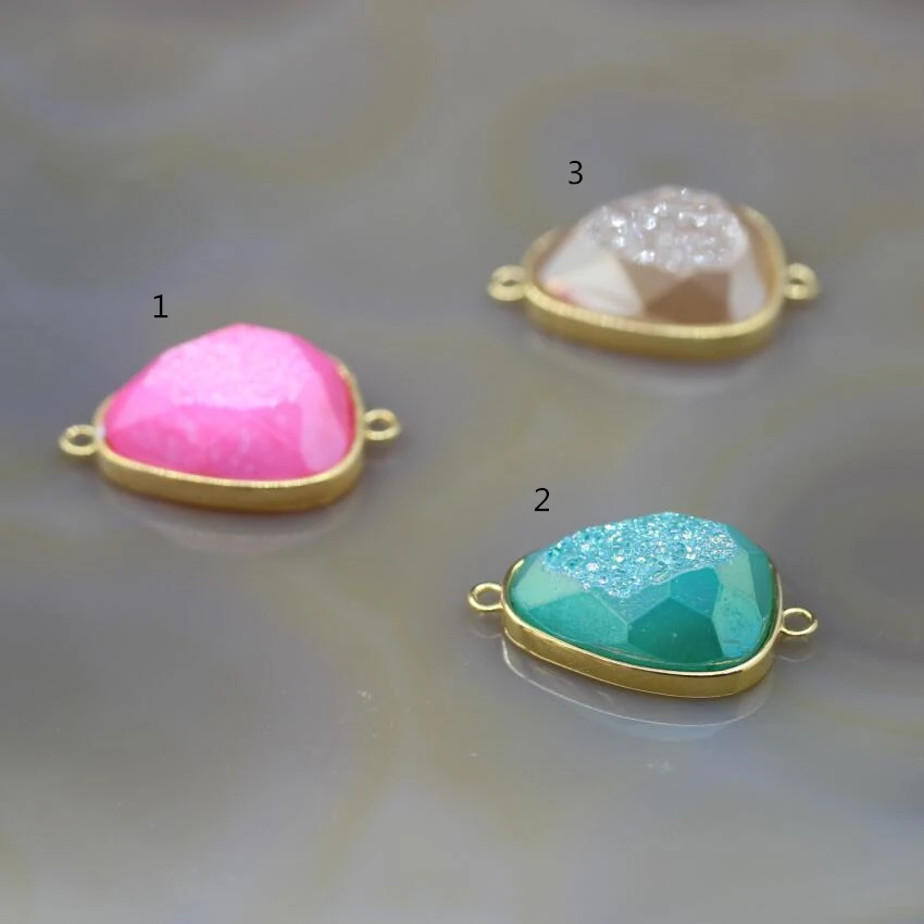 Beste Kopen 5 stks partij, Raw Druzy Geode Connectors Links Armband, agaat Drusy Facet Platte Drop Shape Slab Nugget Gouden Randen Hanger Charms Goedkoop