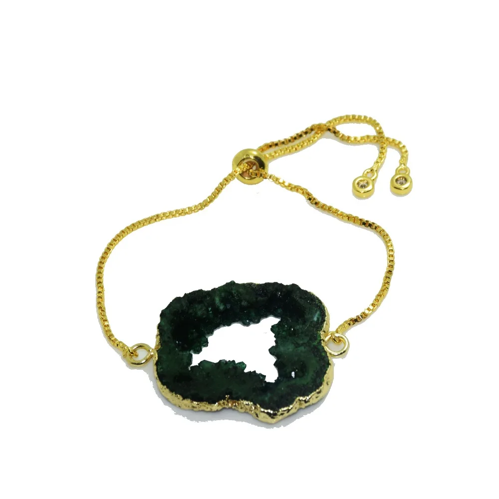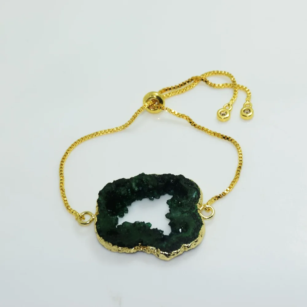 Goede Kopen Gratis vorm Groene natuurlijke ruwe steen slice druzy armband meisje gold plating slab crystal quartz geode druzy connector armband Goedkoop.