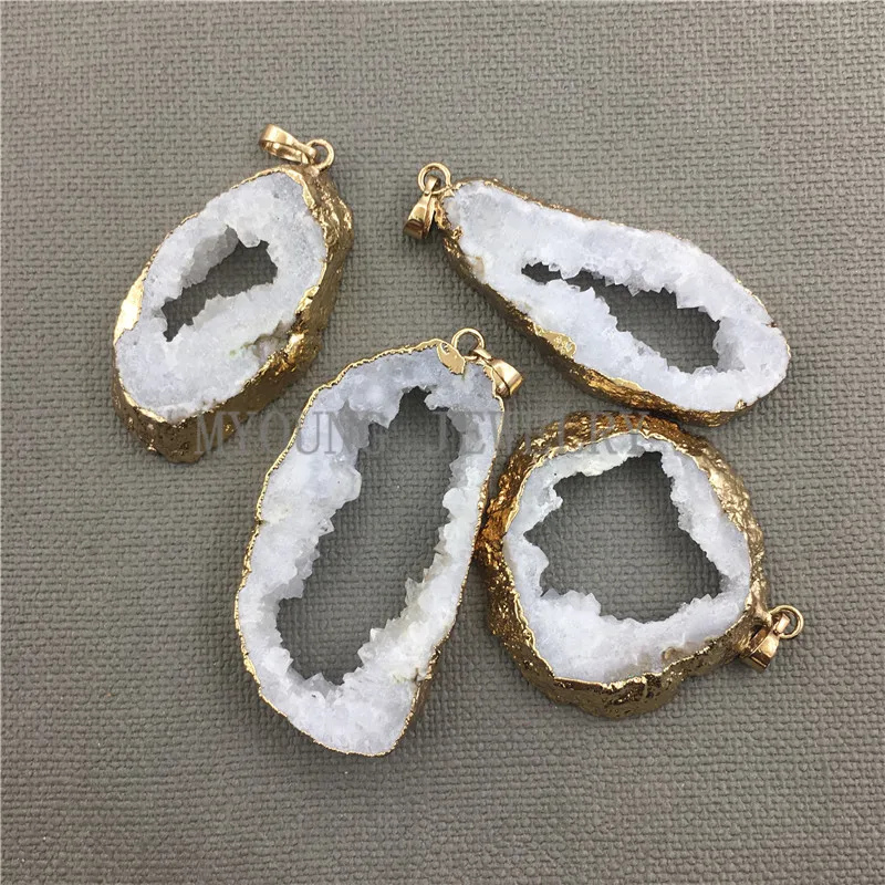 Goede Koop MY0411 Freeform White Crystal Quartz Slice Drusy Hanger Charm, Quartz Druzy Slab Pure Gold Kleur Rand Ketting Hanger Goedkoop.