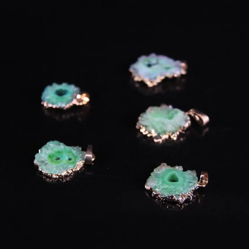 . Goede Kopen 5 stks partij, Ruwe Groene Quartz Geode Flat Slab Hanger kralen, Natuurlijke Druzy Agaten gems Freeform Slice Hanger Ketting sieraden Goedkoop.