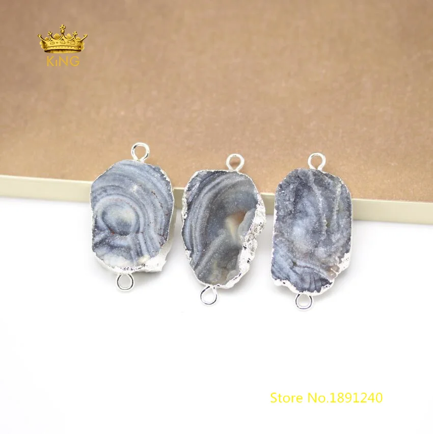Beste Koop 10 stks Plated Zilveren Borgtocht Natuurlijke Druzy Connectors, Ruwe Drusy Quartz Agaten Slice Slab Kralen Links Charms Armband Ketting GH260 Goedkoop