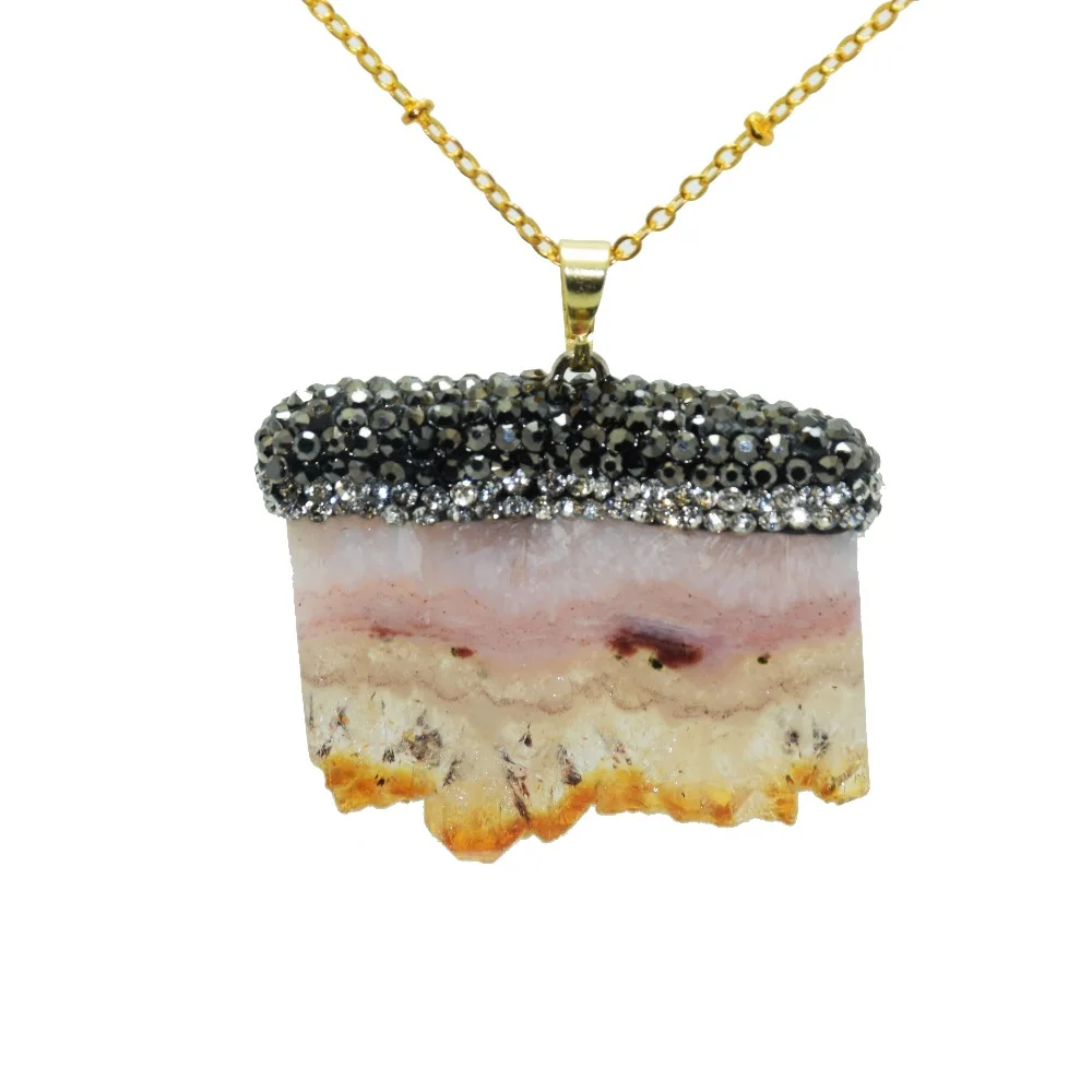 Kopen Goedkoop 1 st Echte Rauwe cluster geode druzy quartz slice ketting vrouwen rhinestone crystal verharde plaat druzy stenen hanger ketting voor meisje Online