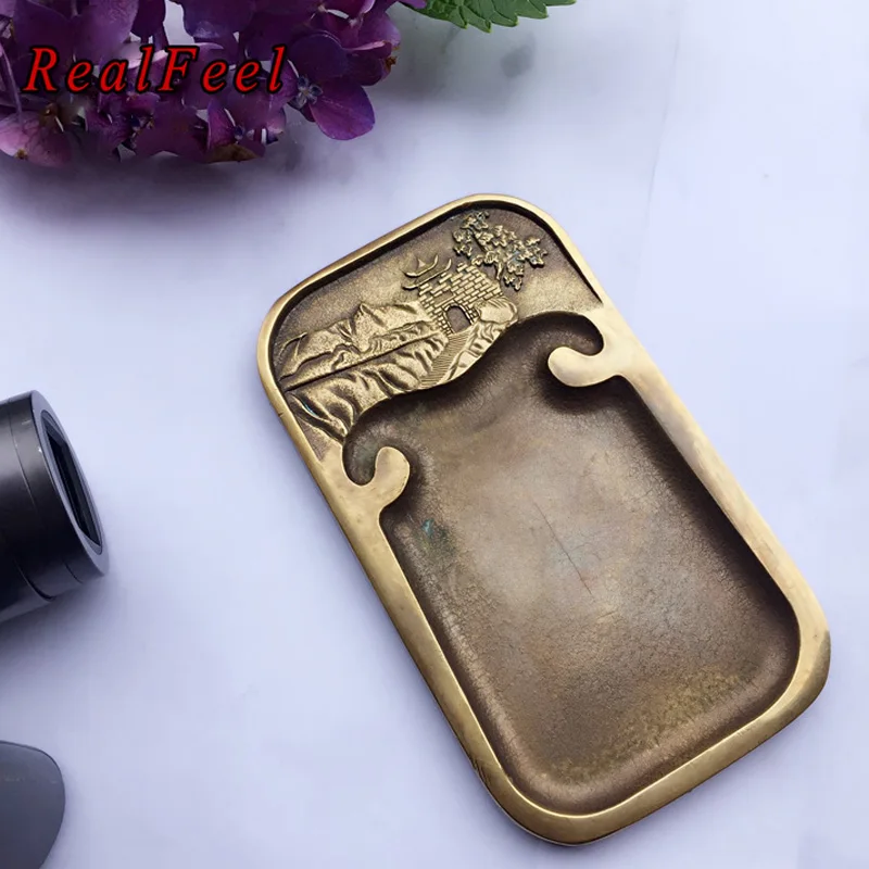 Beste Kopen REAL VOELEN 13.7X7.8X0.9 CM Chinese Kronkelende path patroon koper inkt steen Antieke collectie inkt plaat Goedkoop.
